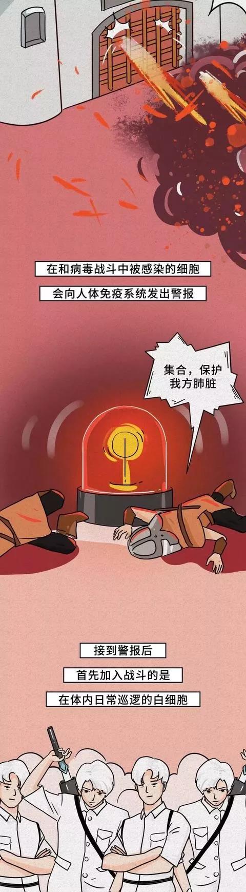 (以下漫画转自:国家应急广播-人体和病毒展开的生死搏斗)