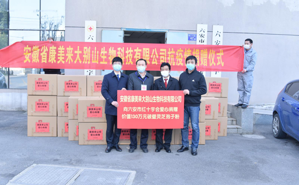 3月5日下午,为支援地方抗击疫情,康美来公司向六安市红十字会捐赠芝蔻牌破壁灵芝孢子粉3900盒,总价值130多万元。
