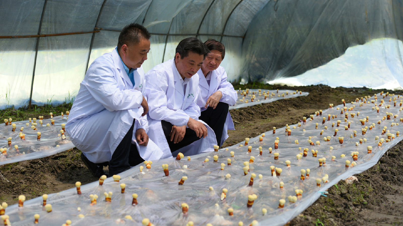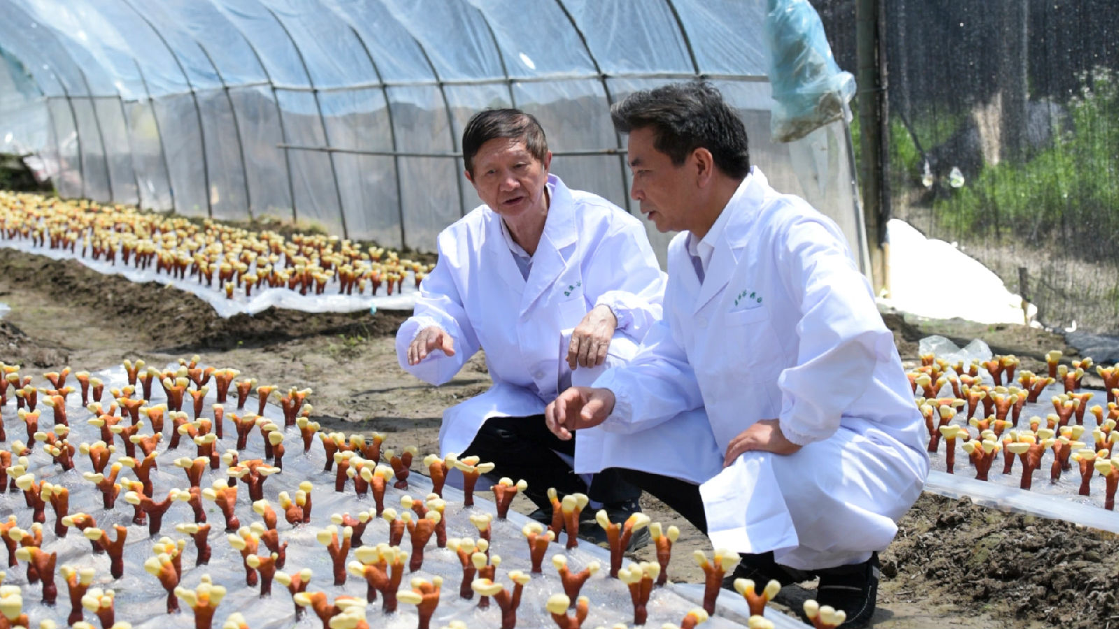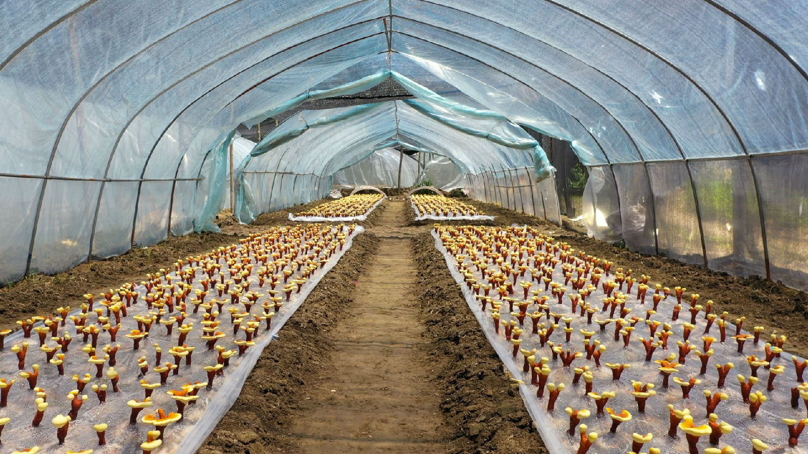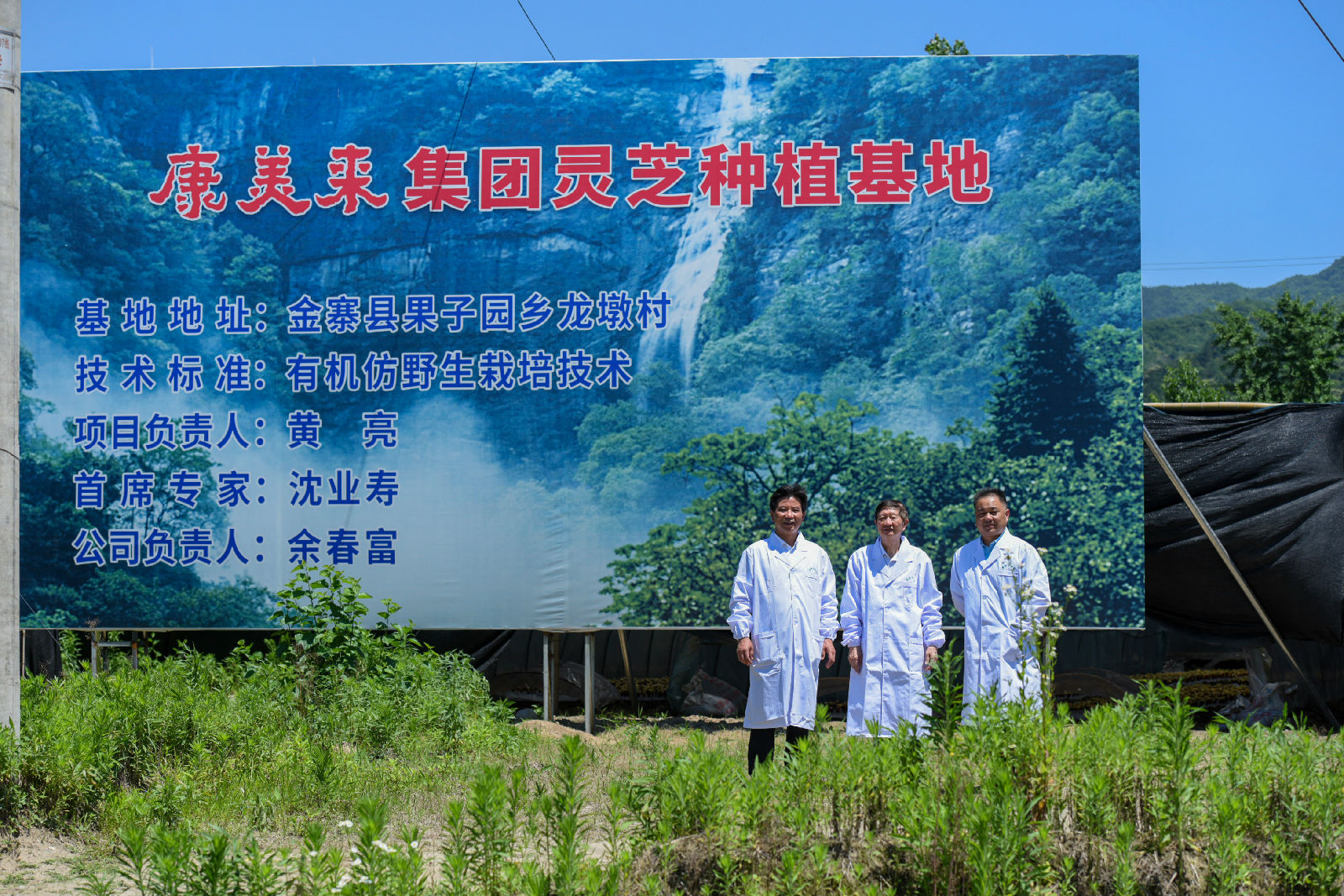 仲夏的大别山,万物并秀,满目苍翠。6月5日上午,康美来集团董事长余春富和灵芝栽培技术首席科学家沈业寿教授一起前往大别山腹地金寨县果子园乡龙墩村仿野生有机灵芝种植基地视察,先前抵达的基地负责人黄总已在基地等候。余董一下车就直奔灵芝大棚。