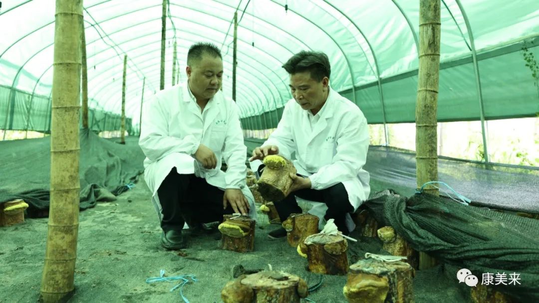 6月30日上午,余春富董事长前往大别山长岭药材基地视察灵芝、桑黄等生长情况。
