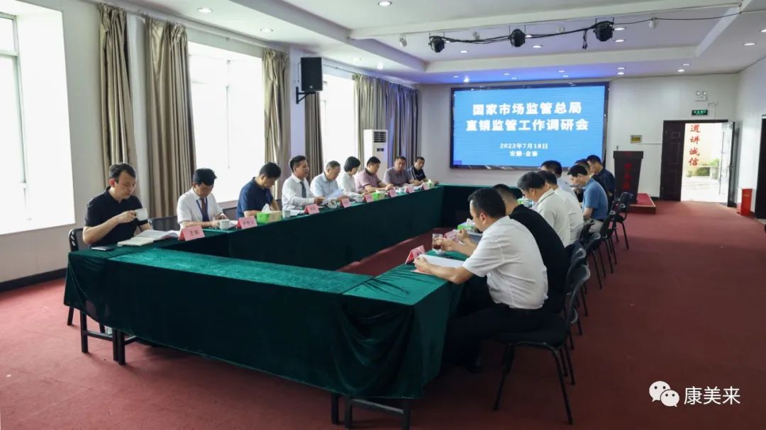7月18日下午,市场监管总局价监竞争局朱忠良副局长,市场监管总局价监竞争局二级巡视员职向阳,市场监管总局价监竞争局一级调研员李浩永,安徽省市场监管局党组成员、副局长何汉翔,安徽省市场监管局竞争执法局局长、一级调研员郑文宝,六安市市场监管局党组织书记、局长、二级巡视员方厚奇,六安市市场监管局二级调研员韩勇,调研组一行亲临康美来公司调研。