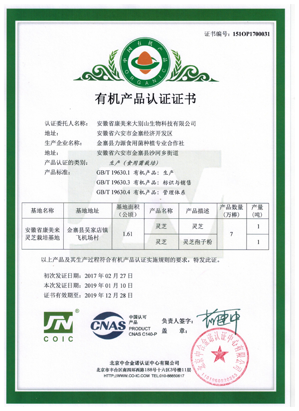 自2016年开始申请有机产品认证,经北京有机认证权威机构通过三年持续抽样检测,完全符合有机标准,并于近期正式颁发“有机产品认证证书”。