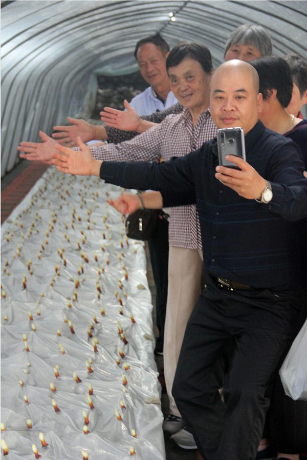 伙伴们见到余董和沈教授感到意外和惊喜,纷纷要求拍照留念,灿烂的笑容和灵芝一样美丽。