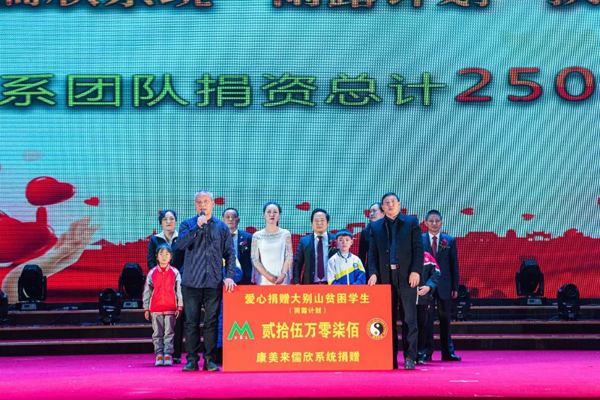 2019年12月30日,康美来儒欣经销商团队在江阴召开2019年度“雨露计划”扶贫助学公益活动暨表彰盛典。