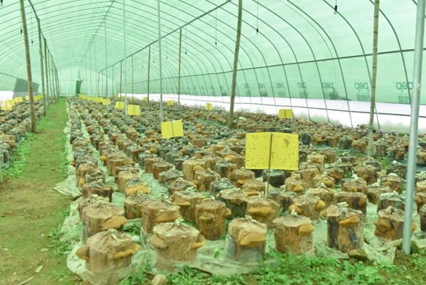 基地负责人万总夫妇已经到达药材基地等候多时,这个时节,进山的人很少。他表示:已生长两年的桑黄处于冬眠阶段,子实体金黄鲜活,在标准化的大棚里过冬,没有任何问题,今年秋天就可采收。余董和基地负责人一起研究了桑黄技术创新及生产条件问题。