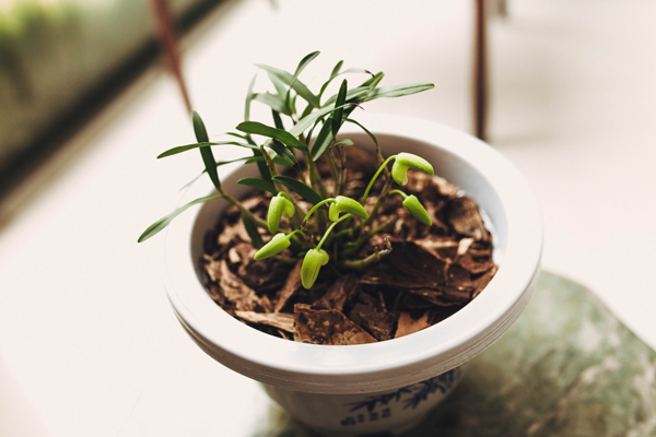 南朝梁代·陶弘景《名医别录》曰:“石斛生六安山谷水傍石上,七、八月采茎,阴干”。