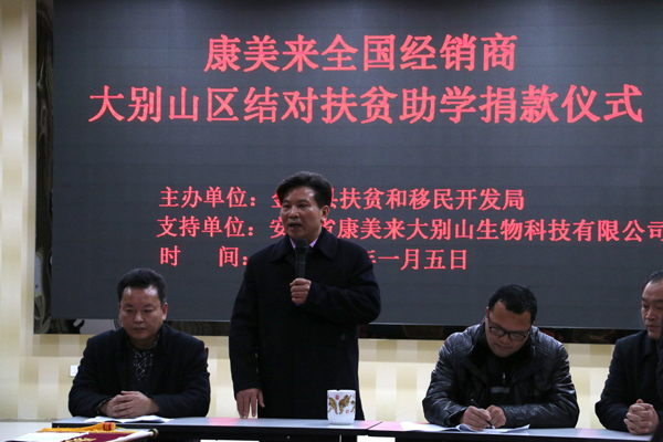 捐助仪式上,全国社会扶贫先进个人、公司董事长余春富先生发表了热情洋溢的讲话,他表示康美来公司扎根大别山区,得到了当地政府大力扶持,已经进入大发展时代,正朝着做中国著名民族直销企业的方向努力。同时重申公司在发展壮大的同时,始终牢记企业社会责任,以高度的责任感向社会传递爱心,传递温暖正能量,将一如既往地关注贫困学子。